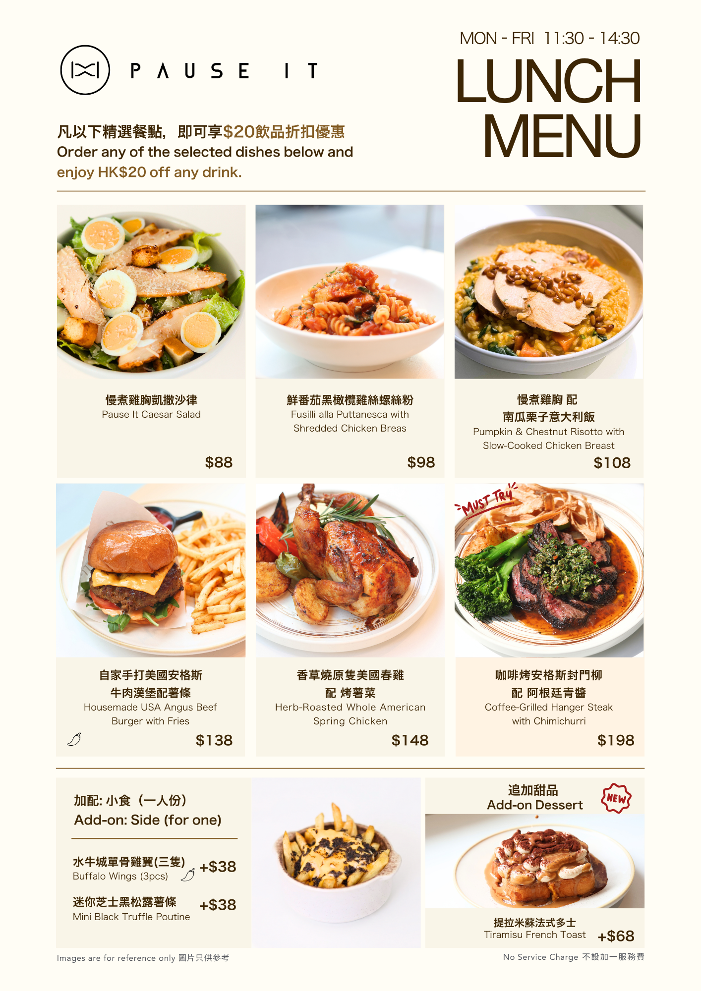 Pause It Mongkok Breakfast Menu Lunch Menu afternoon tea menu DRINKS MENU ALL DAY FOOD MENU BOOK NOW on whatsapp Location BREAKFAST MENU LUNCH SET MENU AFTERNOON TEA MENU DRINKS MENU ALL DAY FOOD MENU